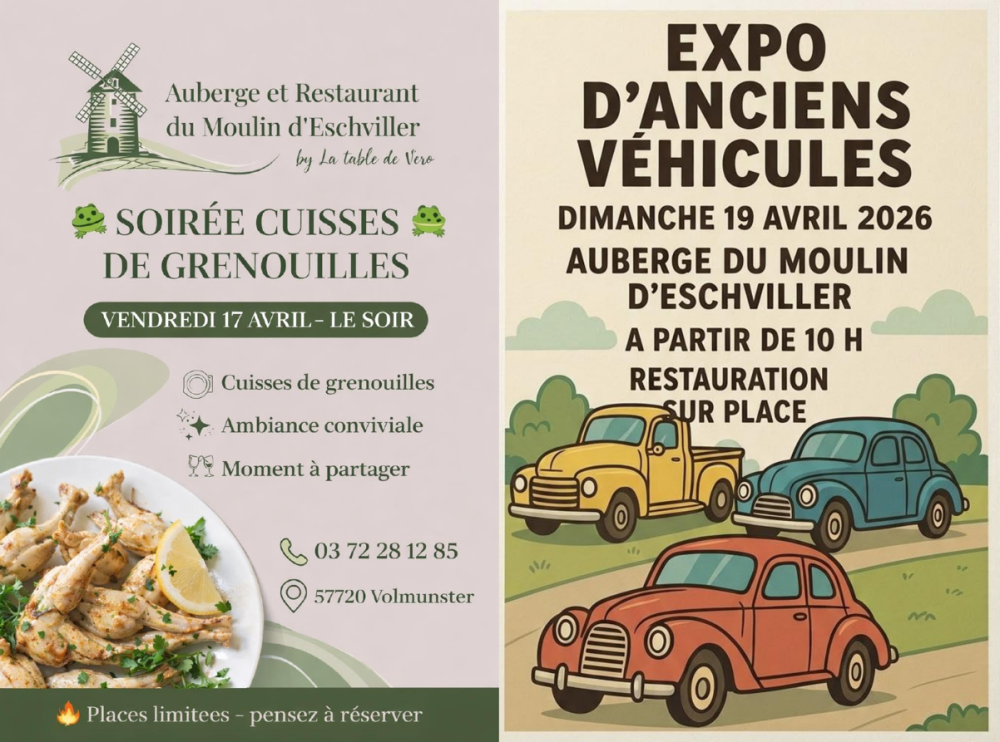 ** Les données personnelles communiquées sont nécessaires aux fins de vous contacter et sont enregistrées dans un fichier informatisé. Elles sont destinées à L'auberge du moulin d'Eschviller et ses sous-traitants dans le seul but de répondre à votre message. Les données collectées seront communiquées aux seuls destinataires suivants: L'auberge du moulin d'Eschviller rue du Moulin 57720 Volmunster . Vous disposez de droits d’accès, de rectification, d’effacement, de portabilité, de limitation, d’opposition, de retrait de votre consentement à tout moment et du droit d’introduire une réclamation auprès d’une autorité de contrôle, ainsi que d’organiser le sort de vos données post-mortem. Vous pouvez exercer ces droits par voie postale à l'adresse rue du Moulin 57720 Volmunster ou par courrier électronique à l'adresse . Un justificatif d'identité pourra vous être demandé. Nous conservons vos données pendant la période de prise de contact puis pendant la durée de prescription légale aux fins probatoires et de gestion des contentieux. Vous avez le droit de vous inscrire sur la liste d'opposition au démarchage téléphonique, disponible à cette adresse: Bloctel.gouv.fr. Consultez le site cnil.fr pour plus d’informations sur vos droits.